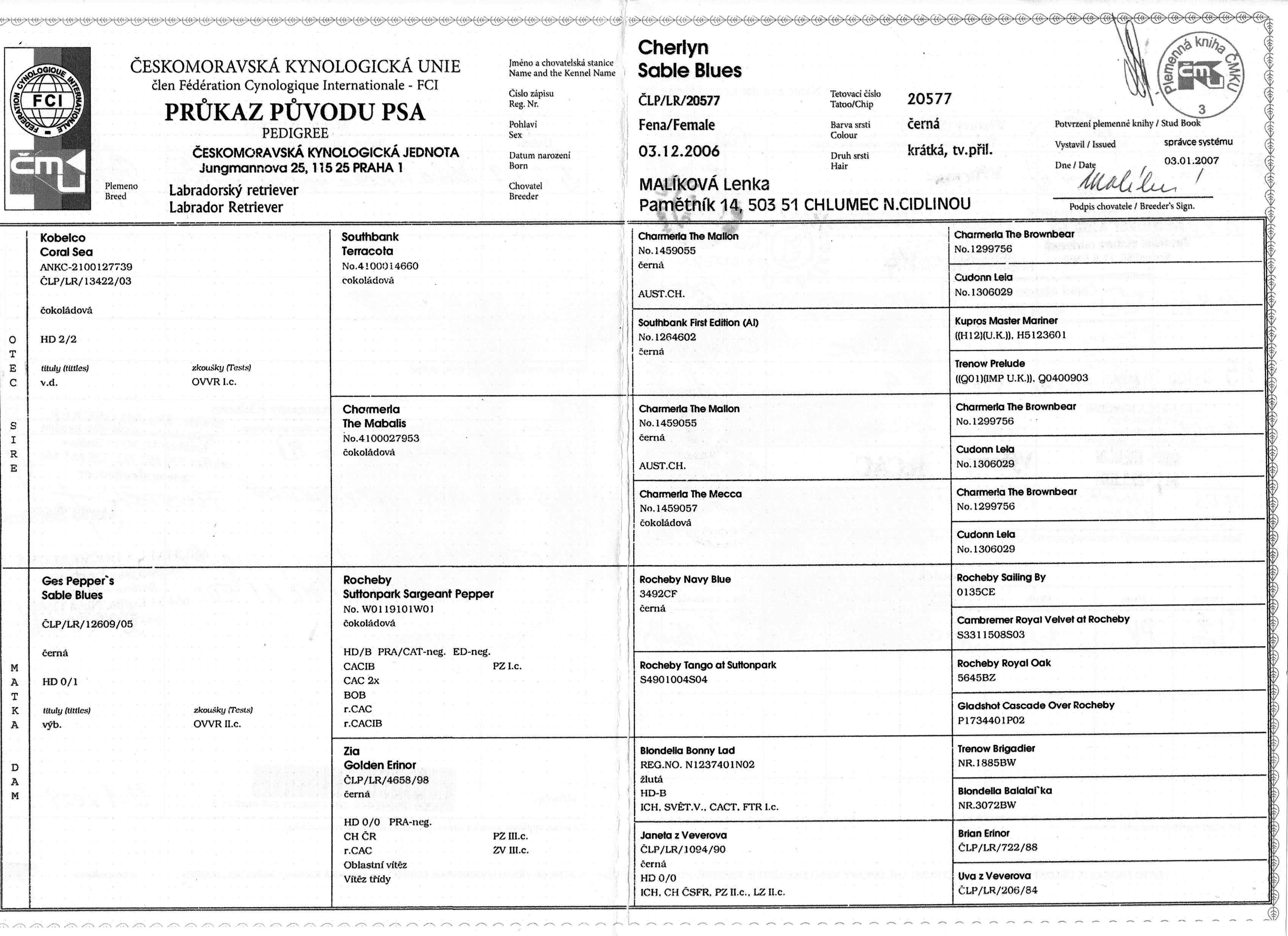 CH CZ,SK Cherlyn Sable Blues "U"