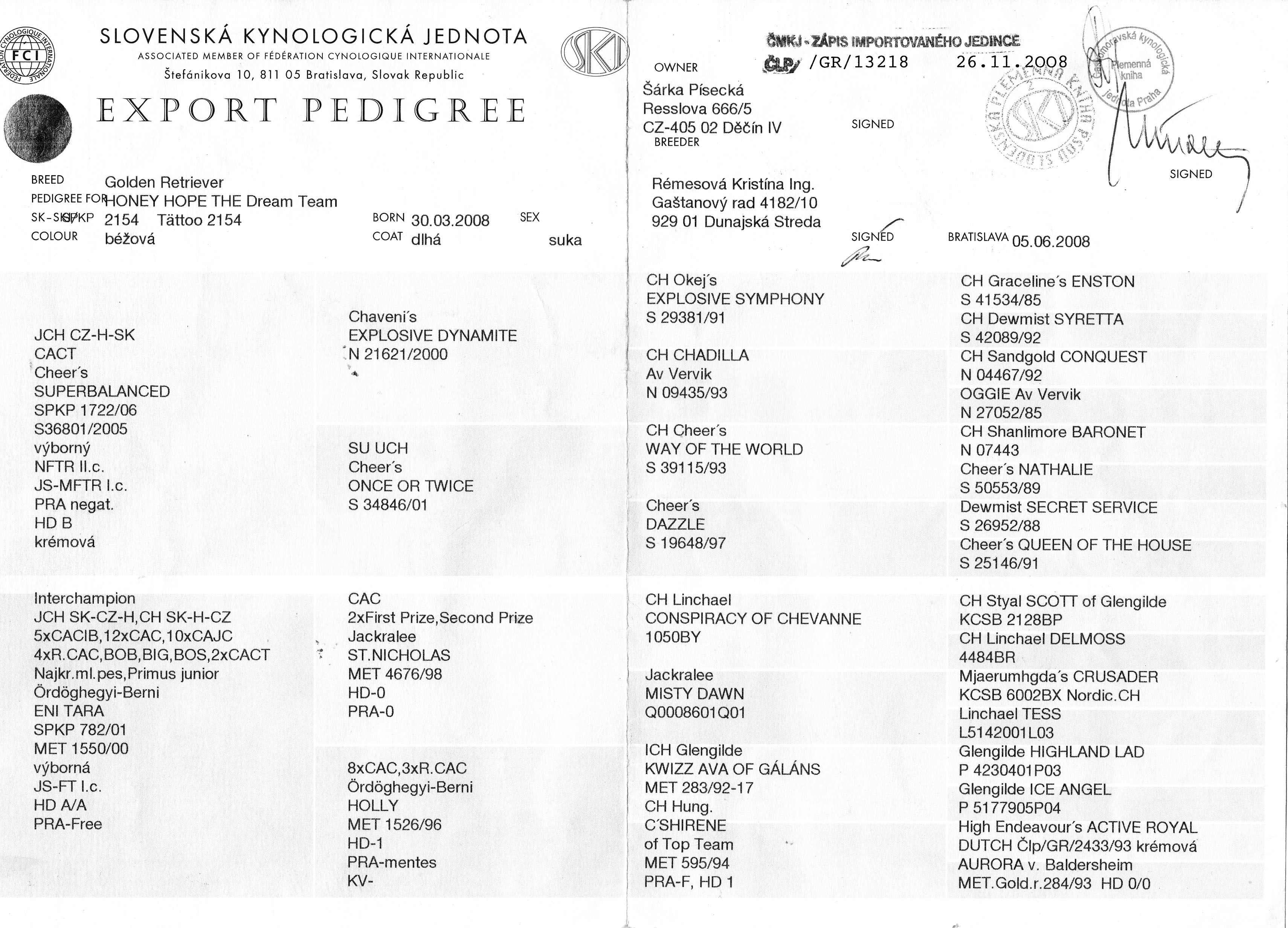 Father: JCH CZ-H-SK CACT Cheer´s Superbalanced SPKP 1722/06 |